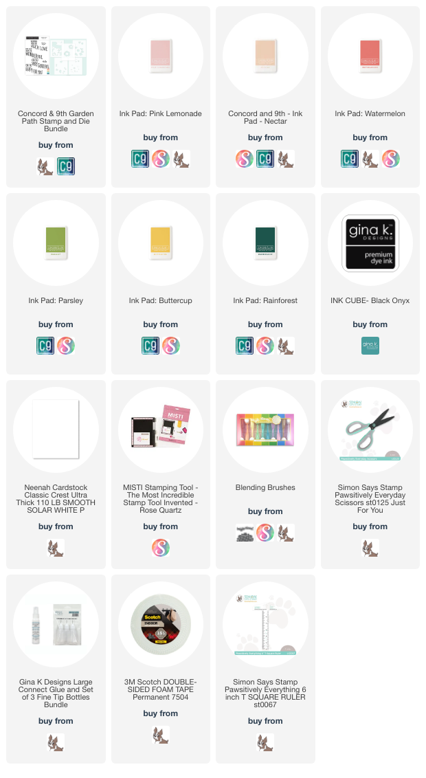 Today I am sharing a card I put together for a Spring Instagram hop. The theme prompt this week was “April Showers bring…” and I immediately thought May flowers! Using products from the Concord and 9th March 2023, I made a quick and easy one-layer card. Layering stencils have become my favorite way to craft and the Garden Path layering stencil is no exception.