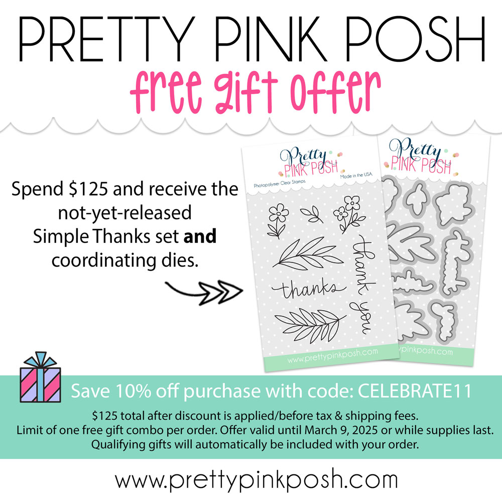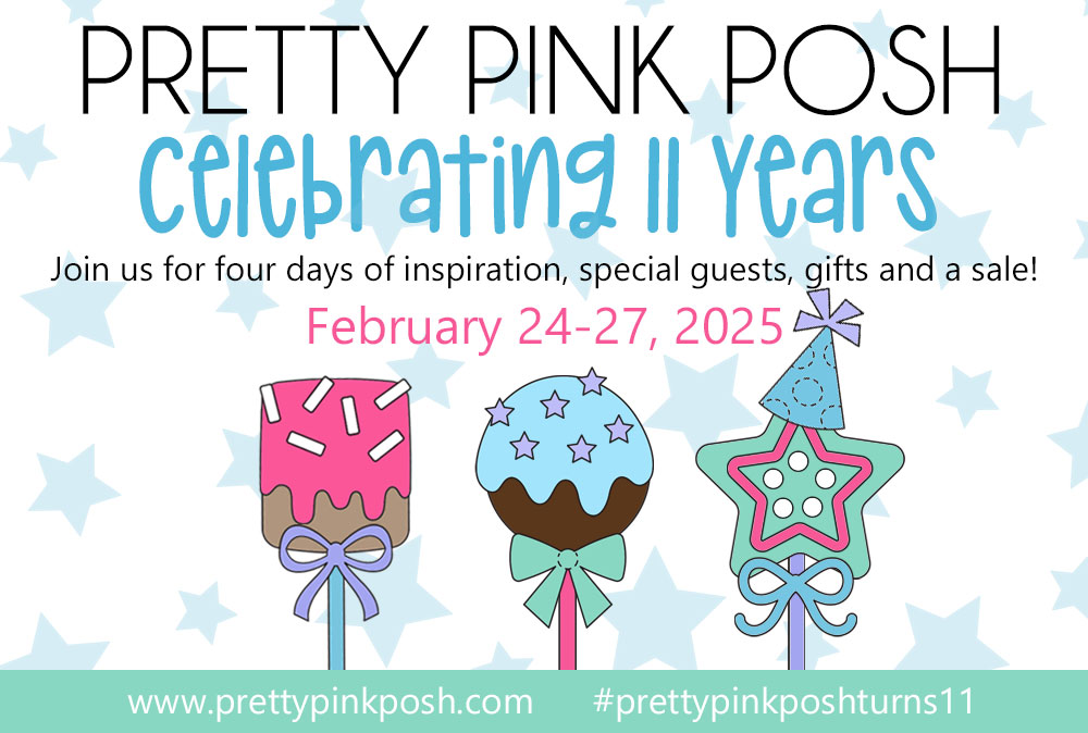 I am so excited to be participating in the Pretty Pink Posh Birthday Celebration Blog Hop! When PPP reached out to me, I squealed with excitement! The products from this release are SO fun and I have had a blast creating. Thank you again Pretty Pink Posh!
